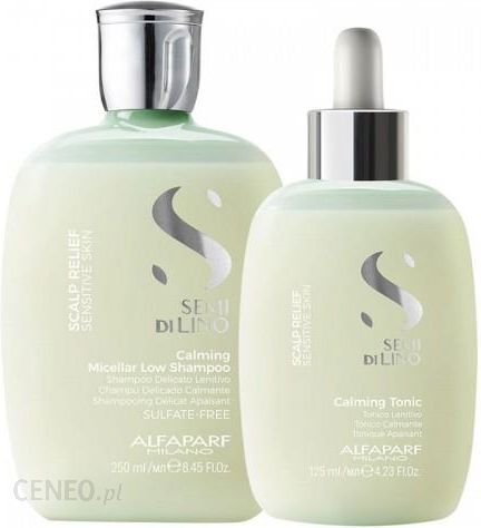ALFAPARF ZESTAW ŁAGODZĄCY Szampon micelarny 250ml | Tonik 125ml UKOJENIE I OCZYSZCZENIE DLA WRAŻLIWEJ SKÓRY GŁOWY Zestaw Alfaparf Semi di Lino Scalp Relief to doskonała odpowiedź na potrzeby wrażliwej skóry głowy. Pielęgnacja delikatnie oczyszcza włosy i skórę głowy przynosząc jej ulgę oraz redukując uczucie swędzenia i dyskomfortu. Delikatna, niskopieniąca formuła szamponu, dzięki miecelom, które łącząc się ze sobą wchłaniają i eliminują zanieczyszczenia oraz pozostałości sebum, gwarantuje skuteczne oczyszczenie skóry bez naruszania jej naturalnej bariery ochronnej. Unikalne połączenie probiotyków i prebiotyków z ekstraktem z kaparów włoskich pomaga w utrzymaniu właściwej równowagi skóry głowy i włosów, zapewnia komfort oraz łagodzi podrażnienia. Pielęgnacja sprawia, że włosy stają się mocniejsze, zdrowsze i odporne na działanie czynników zewnętrznych. Szampon i tonik ponadto zostały wzbogacone o Color Fix Complex, który pomaga na dłużej zachować piękny kolor włosów. DELIKATNIE OCZYSZCZA PRZYWRACA RÓWNOWAGĘ SKÓRY GŁOWY KOI ŁAGODZI PODRAŻNIENIA DODAJE WITALNOŚCI CHRONI PRZED ZANIECZYSZCZENIAMI ODŚWIEŻA CHRONI KOLOR NADAJE POŁYSK SKŁADNIKI AKTYWNE Urban Defence Pro Zewnętrzna tarcza, która chroni włosy przed uszkodzeniami spowodowanymi zanieczyszczeniami powietrza. Shine Fix Complex Wyciąg z siemienia lnianego, zapewniający maksymalny połysk przez 24h od nasady aż po same końce. Color Fix Complex filtry UV oraz antyoksydanty, zapewniające ochronę koloru i przedłużające jego piękny wygląd. Microbiotic System Kompleks probiotyków i prebiotyków zapewniający równowagę skóry głowy. Derma Comfort Complex Ekstrakt z kaparów włoskich, zapewniający komfort skórze głowy. SPOSÓB UŻYCIA Niewielką ilość szamponu rozprowadź na wilgotnych włosach. Delikatnie masuj głowę i włosy do momentu spienienia. Następnie pozostaw na włosach 2 minuty. Dokładnie spłucz. W razie potrzeby powtórz czynność. Tonik nakładaj bezpośrednio na skórę głowy. Masuj dla lepszego wchłonięcia preparatu. Nie spłukuj.