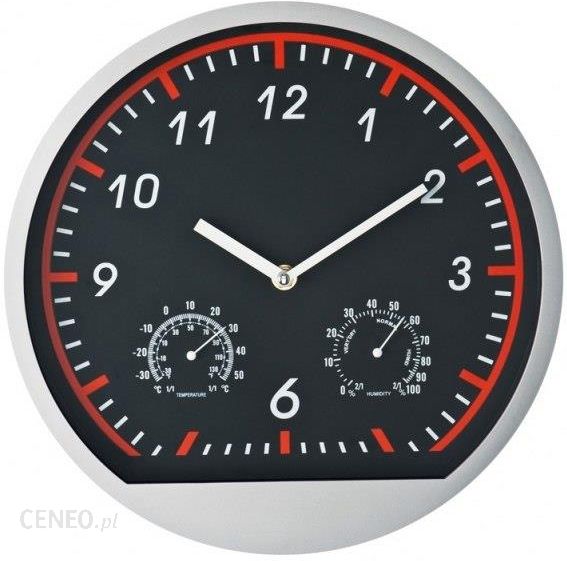 Zegar ścienny BAGIO wykonany jest w całości z plastiku. Zegar posiada również termometr i hygrometr. Niezbędna jest bateria AA.