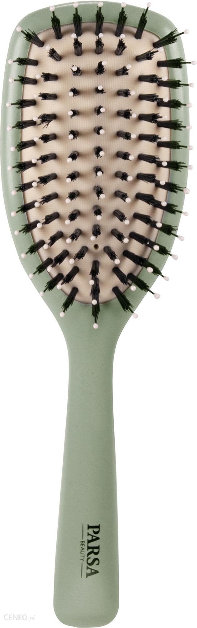 Wegańska szczotka jest idealna dla długich włosów wymagających pielęgnacji. Udowodniono, że wegańskie włosie wzorowane na szczecinie z dzika, pielęgnuje włosy jeszcze lepiej niż ich naturalny odpowiednik. Specjalna tekstura włókien w widoczny sposób nadaje włosom więcej blasku podczas rozczesywania.Szczotka wykonana jest bioplastiku.Materiał nie powinien być wystawiana na działanie wysokich temperatur.